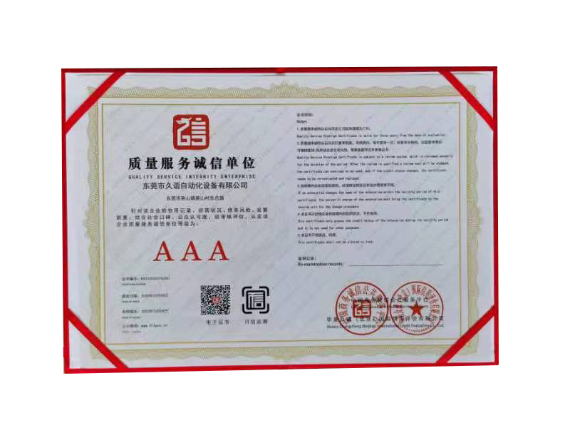 企業信用評價AAA級信用企業證書